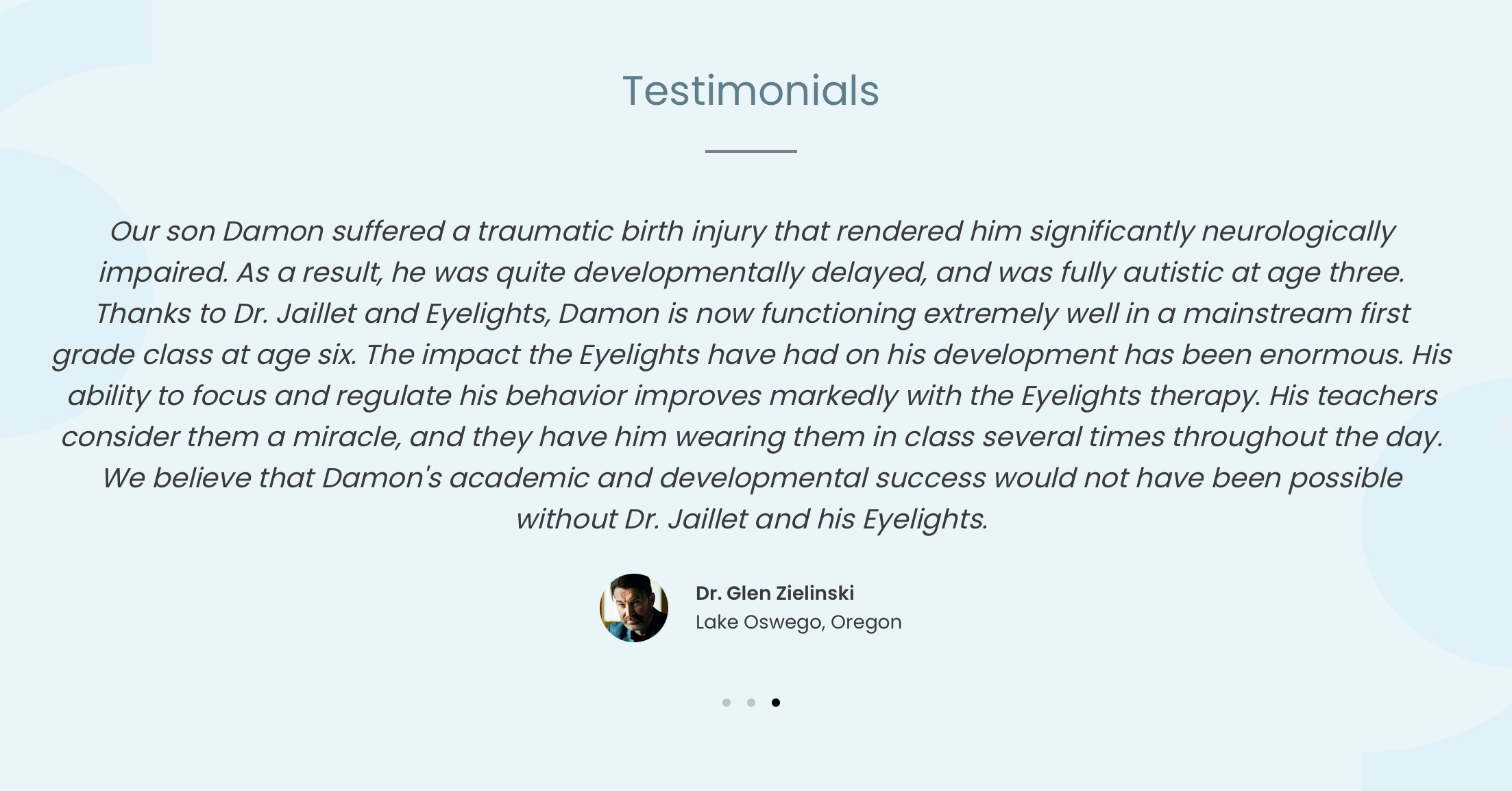 A Board Certified Chiropractic Neurologist, Dr. Peter Jaillet has been doing research in the field of neurology for the past 18 years. He has earned over 2500+ content hours in both Applied Kinesiology and Neurology. In 1995, during treatment with two world class athletes, he developed the concept and prototype for Eyelights, a device that provides optimal stimulation to the brain using light therapy. Through further research, he found that light therapy also increased a child’s ability to learn. Dr. Jaillet continues to further his education and currently is doing a fellowship in traumatic brain injury as well as pursuing a Ph.D. in neurosciences and rehabilitation.